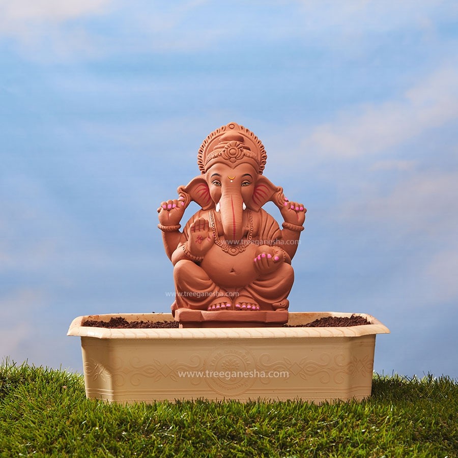 12inch Vighnaharta Ganpat | Tree Ganesha | Eco-Friendly Ganpati Murti | Seed Ganesh | Red soil Ganesh | Plantable Ganesha