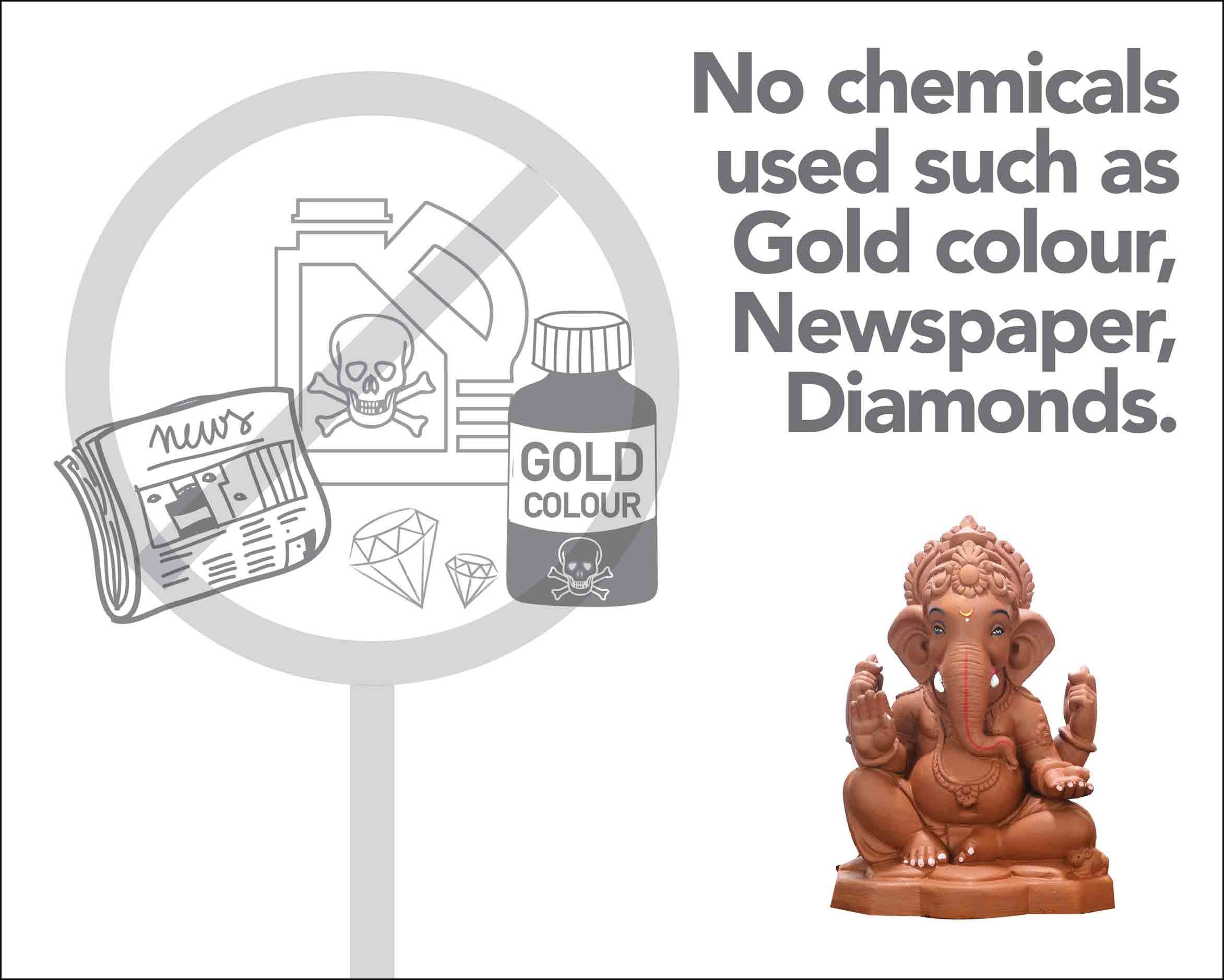 Made from red soil, natural colors, and seeds, this plantable Ganesha idol grows into a plant after visarjan.